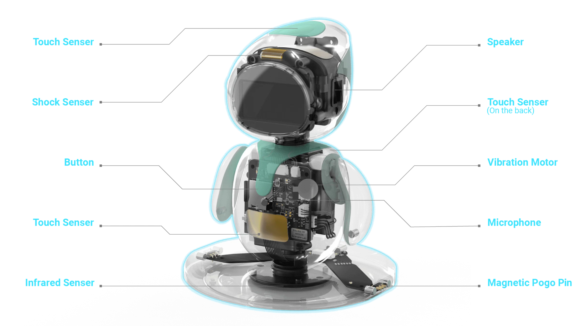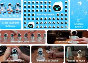 - Interacción Sensorial Avanzada: Eilik está equipado con sensores táctiles en la cabeza, el vientre y la espalda, además de un sensor de vibración que le permite reaccionar a caricias, palmadas y otros estímulos físicos.